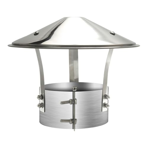 T Tooyfulの煙突キャップカバーは、屋外用の通気性ステンレス鋼製で、雨や鳥から煙突を保護します。傘の形状で、パイプ直径15cm対応です。