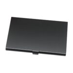 BLOOPIC名刺入れは、アルミ製のカードケースで15枚の名刺を収納可能。紛失防止のデザインで、ビジネスシーンに最適な薄型のシンプルなブラックケースです。持ち運びも便利。
