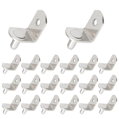 BLOOPIC棚ダボ20個セットは、Φ6mmの金属製で、棚板を支えるL型の差し込みタイプです。サイズは18.5×5mmでシルバー色。家具や本棚の固定に最適です。