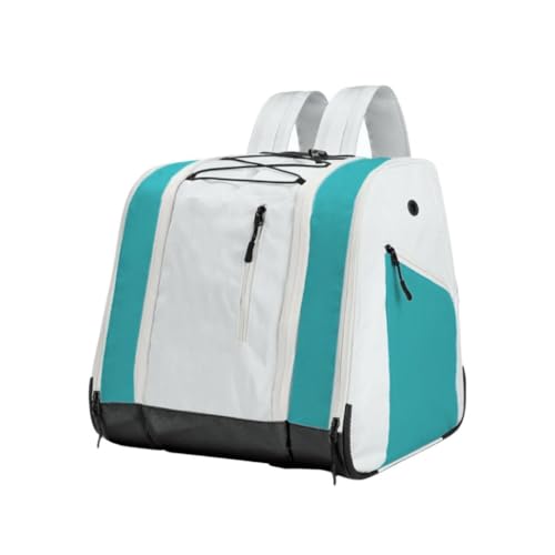 Colaxi 38L スキーブーツバックパックは、13x3x15インチのサイズで、大型のスノーボードやスキーヘルメットを収納可能。排水穴付きでプロ仕様のポリエステル製、白色のデザインが特徴です。