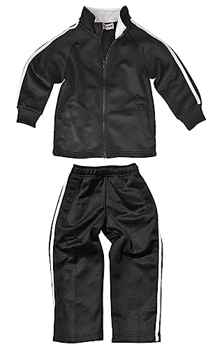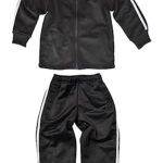 シメファブリックのキッズ・ジュニア用ジャージ上下セット。ブリスタースーツ体操服で男の子・女の子兼用。ラインジャージパンツ付き、150cmサイズ、カラーはブラックxホワイトです。