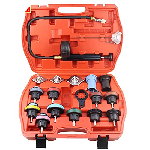 パワーテストプローブのユニバーサル自動車用ラジエータ圧力テスターキットは、14ピースの漏れ検出ツールで、冷却システムのクーラント真空パージが可能なフルセットです。