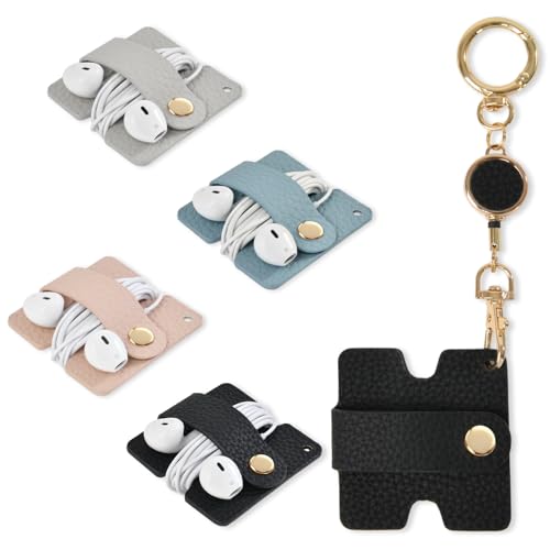 イヤホン用のPUレザー製コードホルダー。巻取り式でコードの絡まりを防止。再利用可能なケーブルバンドで、ヘッドフォンの収納が簡単に行えます(ブラック)。