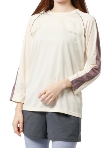 コンバースのレディースTシャツ、7分袖で秋に最適。メッシュ素材で吸汗速乾性あり。スポーツやフィットネスに最適。アイボリー色のLLサイズ。柔らかい着心地で快適なトレーニングをサポートします。