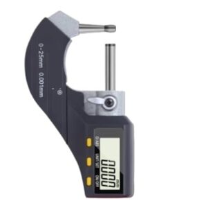 IP65防水のデジタルマイクロメーター。精度0.001mm、測定範囲0-100mm。読みやすいディスプレイで、作業に最適な厚さゲージです。