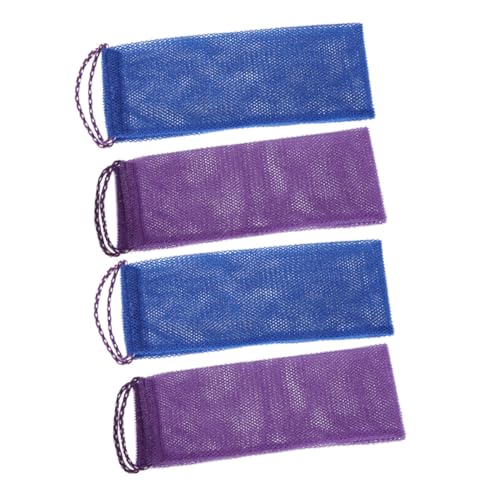 VINTORKYの4個セット長めボディバスタオルは、泡立ち豊かなシャワーブラシで肌の角質ケアに最適。携帯に便利なサイズで、ブルー・パープルから選べます。