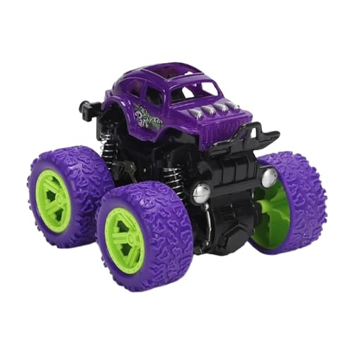 QLoztyseの紫色トラックおもちゃは、摩擦動力で動く四輪駆動の頑丈な構造を持ち、耐落下性も高い設計。電池不要で、子供の誕生日プレゼントやコレクションに最適です。