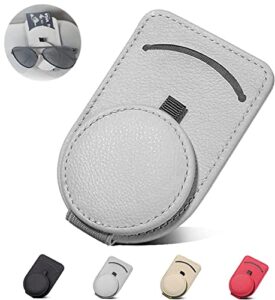 HUACHENG サングラスホルダー 車 メガネホルダー レザー素材 カードホルダー サンバイザー メガネ用 サングラス クリップ 眼鏡を守ります 安全運転 車用収納 マグネット 取り付け簡単 カー用品 車載収納用 車 アクセサリー ((2in1機能) グレー)
