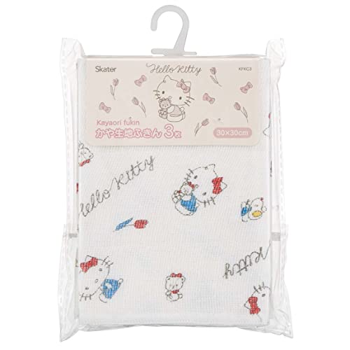 スケーターのハローキティラインデザイン生地ふきん3枚セット。サイズは30×30cmで、可愛らしいデザインが特徴。キッチンや家庭でのさまざまなシーンに活躍します。素材は吸水性が高く、実用性も兼ね備えています。