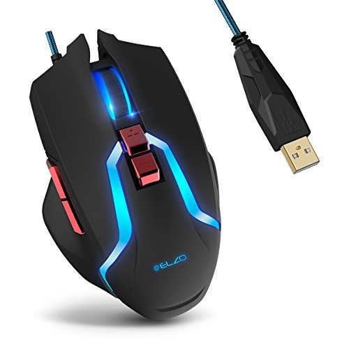 Elzoの光学式USB有線マウスは、5段階DPI調整、7つのボタン、呼吸ライト機能を搭載。PC、ノートパソコン、タブレット、Macにも対応。