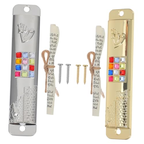 ノーブランドのヴィンテージスル金属製メズーザ2セット。ユダヤ教の門柱装飾で、家に祝福と保護をもたらす祈りを込めたアイテムです。