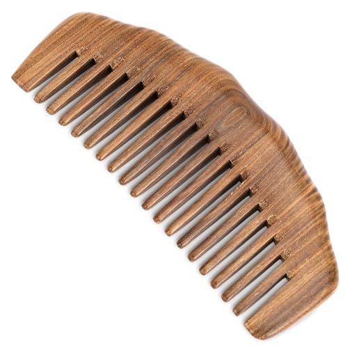 木製ワイドトゥースコーム。グリーンサンダルウッド製で、ヘアもつれ解消に最適。帯電防止機能あり。ナチュラルカーリーウェーブやドライ・ウェットヘアに対応。男女兼用のブラウン1パック。
