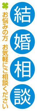 のぼり旗スタジオの結婚相談008は、大サイズ(H2700mm×W900mm)で、視認性抜群のデザインです。結婚式を控えたカップルや出会いを求める人々に最適なアイテム。屋外でも使える耐候性素材を使用しています。