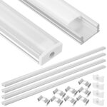 POPETPOP U字型アルミ溝は、LEDストリップテープ用で、4セット50cmのサイズです。透明な輪郭と乳白色のディフューザーを備え、屋内外で使用可能な環境に優しいカバーです。