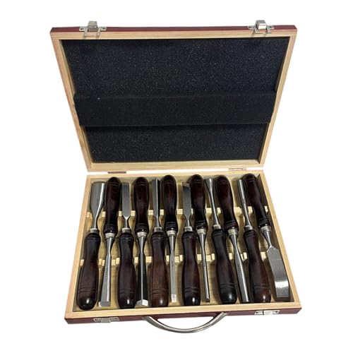 121個セットの木彫りツールで、コンパクトで持ち運びに便利な頑丈な木製ケース付き。木工用ノミが揃い、レッドウッドカラー。