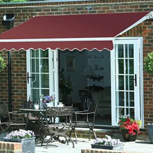 穴あけ不要 手回し式 軒先 オーニング オーニングシェード 日よけスクリーン 巻き取り式 つっぱり式 サンシェード 高さの調節が可能 タープ角度調整可能 目隠し 紫外線 UV カット 簡単設置 日除け 雨よけ 撥水加工 (400cm*120cm,レッド) [並行輸入品]