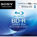 SONYのビデオ用BD-Rは、片面1層で25GBの容量を持ち、4倍速の追記型ディスクです。プリンタブル仕様で、5枚パックは便利です。