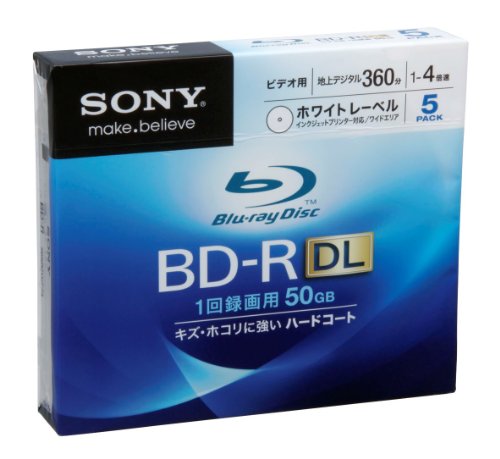 SONY ビデオ用BD-R 追記型は、片面2層で50GBの容量を持ち、4倍速で書き込み可能。ホワイトプリンタブル仕様で、印刷できる5枚パックです。デジタルデータの保存や配布に最適。