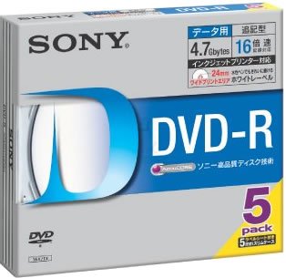Sony DVD-R 4.7GBは、16倍速対応のデータ用ディスクで、ホワイトプリンタブル仕様。5枚入りパックで、印刷可能な表面が便利です。耐久性のある設計で、データ保存に最適です。