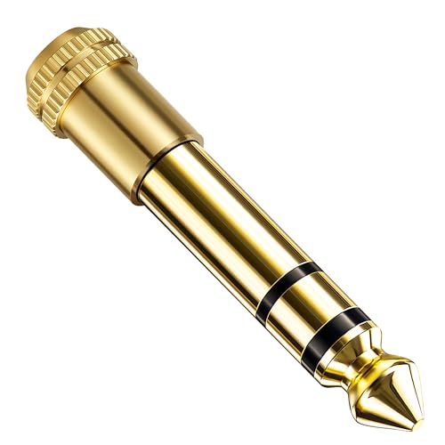 3.5mmイヤホンジャック(メス)から6.35mm標準プラグ(オス)への変換プラグ。TRS/TRRS対応、マイクも使える。24K金メッキにより高音質を実現。ヘッドホン、アンプ、電子ピアノ等、幅広く対応。