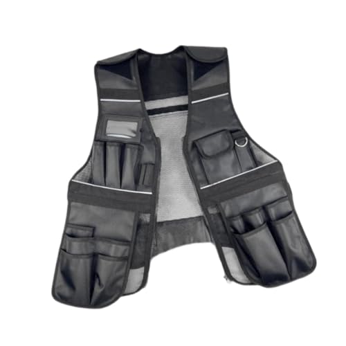 PEWETEツールベストは、耐摩耗性のジッパー付きで、電工工具や作業工具の収納に最適な多機能ベストです。作業場での快適な作業をサポートします。