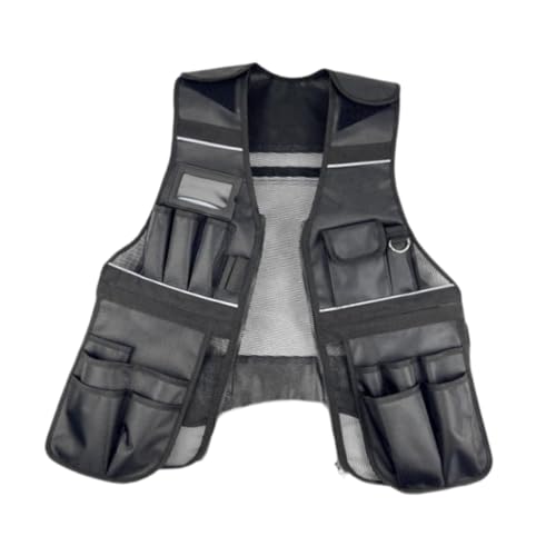 Toysmithツールベストは耐摩耗性に優れ、ジッパーで調節可能。多機能ポケットが豊富で、電気技師や大工に最適な収納力を提供します。