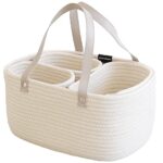 プッパプーポのロープ編みおむつストッカーは、シンプルなアイボリー色で、赤ちゃんの退院時やおむつ・おもちゃの収納に最適なバッグです。スタイリッシュなデザインで、ベビー用品を整理整頓できます。