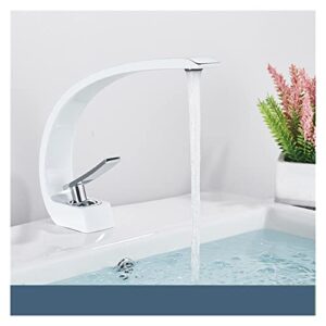 浴室水栓 クロムバスルームの洗面台の蛇口シングルハンドル磨かれた金の蛇口の熱いコールドミキサータップデッキマウント洗面台クレーン キッチン・バス備品 (Color : White and Chrome)