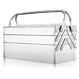 工具箱 ステンレス鋼 ツールボックス 折りたたみ式 3段 工具収納ケース おしゃれ 両開き 大型 工具入れ スチールケース 防錆 ロック穴付き 高耐久 丈夫 部品箱 自動車整備工具箱 (L)