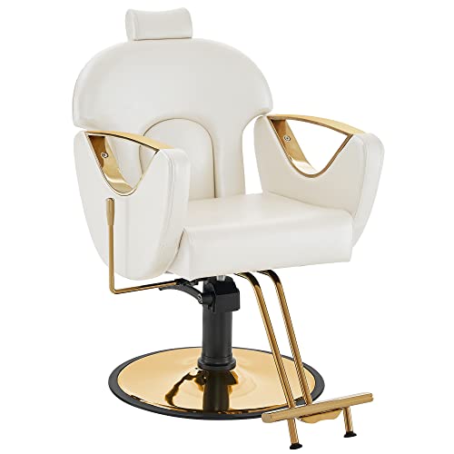BarberPubのラグジュアリークラシック理髪師椅子は、油圧ポンプでリクライニング可能。ビューティーサロンやスパに最適なスタイリスト用器具で、シャンパンカラーが魅力です。