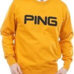 ピンアパレルのメンズクルーネックニットは、ゴルフシーンに最適なデザイン。ブランドロゴ入り、色は150オレンジ、サイズはM。快適な着心地でスタイリッシュな印象を与えます。