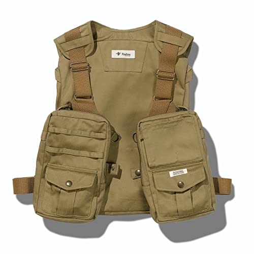 Foxfireのバーチカルタックルベストは、カーキ色のフリーサイズで、機能性とデザインを兼ね備えています。多彩なポケットが装備され、フィッシングやアウトドア活動に適しています。耐久性にも優れた素材を使用。