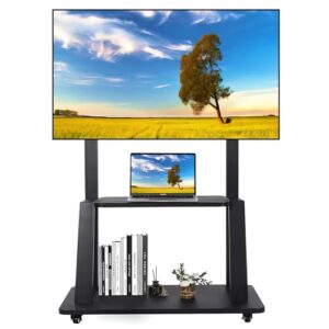 WuYouDa テレビスタンド 壁寄せ キャスター付き 81〜177cm対応 木製棚板付き 高さ調節 左右30°首振り 省スペース 耐荷重40kg VESA規格対応(横20~60cm / 縦10~40cm) (きいろ)