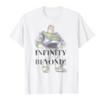 ディズニー100とピクサーの名作「トイ・ストーリー」に登場するバズ・ライトイヤーのTシャツ。オリジナルデザインで、ファン必見のアイテムです!コットン素材で着心地も良好。