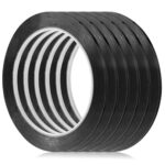 ブラックホワイトボードグリッドマーキングテープ6ロールセット。1/8インチピンストライプで幅3mm。自己粘着タイプで、教室やオフィスのプレゼンテーションに最適。グラフィック作成やチャートラインの表示に便利です。