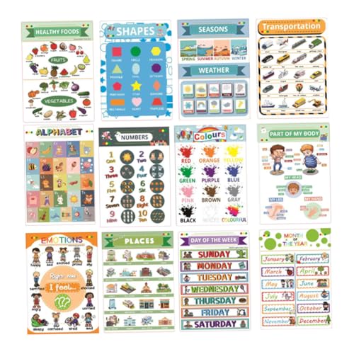 EXAOMBLEの幼児教育用認知英語学習ポスター12枚セットは、家庭や幼稚園での視覚的学習を促進します。鮮やかな色彩と耐摩耗性で、長持ちし、安全に使用できます。