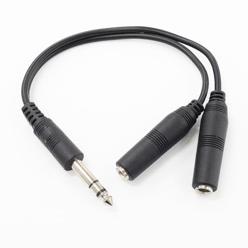 オーディオ分配ケーブル(6.3mmステレオオスと6.3mmステレオメス×2)の長さは0.3mで、音楽機器や楽器の接続に最適。高品質な音質を保持し、同時に2台のデバイスに音声を供給します。