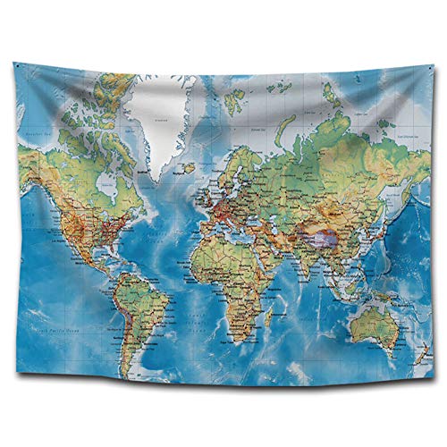 ブルー水彩世界地図タペストリー抽象スプラッタ絵画タペストリー壁掛けインテリア用リビングルーム寝室寮,Lの製品情報