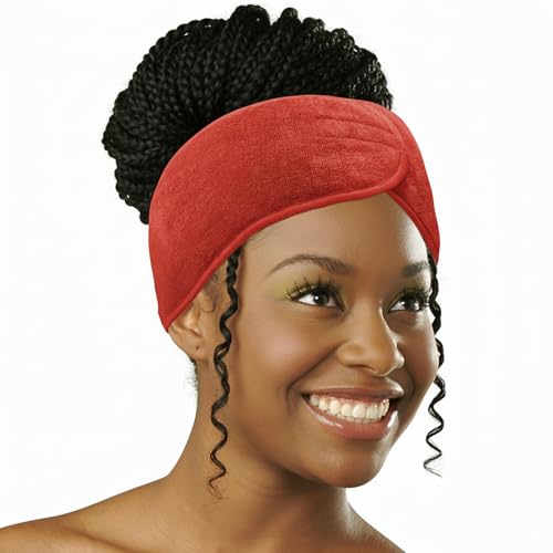 DONNA コットンヘッドラップは、メイクやスキンケア、ヘアスタイリングに最適な吸収性テリークロス素材のスパヘッドバンドです。調節可能で女性にぴったり。レッド、ワンサイズ。