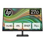 HP V27i G5は27インチのフルHDモニターで、75Hzのリフレッシュレートと5msの応答速度を持つIPSパネルを採用。非光沢仕上げで、HDMI、DisplayPort、VGA接続に対応。AMD FreeSync、ブルーライトカット機能あり。薄型ベゼルで角度調整可能。