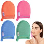 Ptwola 4個セットの角質除去洗顔スクラバー。男女兼用のミトンで、ディープクレンジングやボディスキンケアに最適。スパ感覚で心地よい磨き効果。