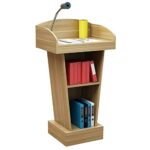環境に優しい大型講演台スタンド。2つの収納スペース付きで、プレゼンテーション用に素早く簡単に組み立てられます。