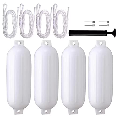 LOL-FUN 4個入り ボートフェンダーバンパー ボートバンパー ボートアクセサリー インフレータブルマリンボートバンパー 釣りボート用 マリンブイ 保護ポンツーン, ホワイトロープの高価買取