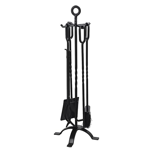暖炉ツール5点セットは、錬鉄製のブラック仕上げで、高い耐久性とスタイリッシュなデザインが特徴です。火かき棒、トング、耐火グローブ、ブラシ、ホルダーが含まれ、暖炉周りのメンテナンスに便利です。