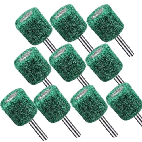 繊維研磨ホイールフラップホイールは、6mm軸、厚み25mm、直径25mmの研削ヘッドで、グリーン色の10個入り。回転工具用の研磨バフとして最適です。