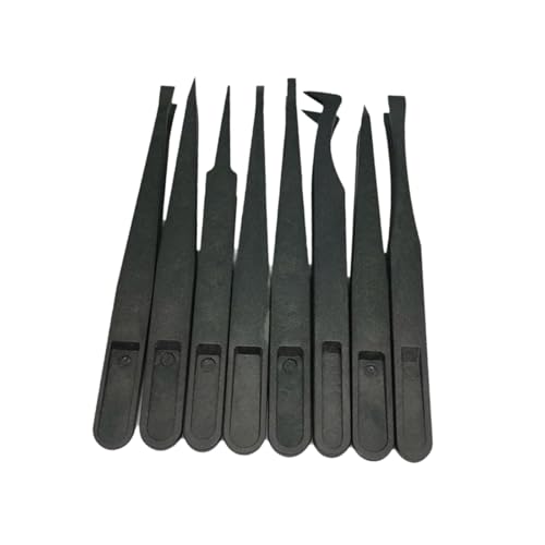 Almenclaの静電気防止ピンセット8個セットは、精密作業に最適。耐久性のあるカーボンファイバー素材で作られ、電子機器やクラフト、ジュエリー修理などに便利です。