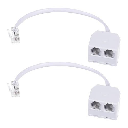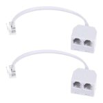 双方向電話回線スプリッター RJ11オス-デュアルメスケーブル 6P4C。電話、ファックス機に対応。ホワイト、2個パック。電話回線を複数で利用するための便利なアイテムです。