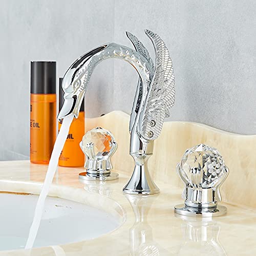 ラグジュアリーなデザインのゴールド蛇口セット3個入り。洗面台やシンクに最適な2ハンドル式バスミキサー。ホームリフォームに最適なビューティーなバスタブミキサータップ。