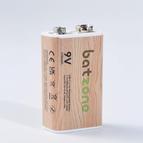 batzoneのリチウムイオン充電池(9V)は4500mWhの高容量を持ち、タイプCケーブルが付属しています。安心して使用できるパワフルなバッテリーです。