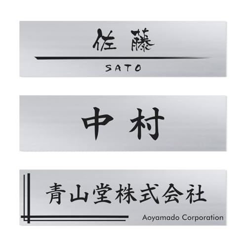 厚さ3mmのシルバー製表札プレート。貼るだけで簡単取り付け。超強力両面テープ付き、屋外対応。レーザー彫刻で高品質な仕上がり。サイズ120X30mm。マンションや戸建て、郵便受けに最適です。イメージ確認サービスもあり。